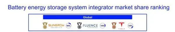 Wood Mackenzie統(tǒng)計(jì)顯示,全球前五大系統(tǒng)集成商占電池儲(chǔ)能系統(tǒng)總出貨量(MWh)的62%,其中中國(guó)企業(yè)占據(jù)三席。來(lái)自中國(guó)安徽合肥的陽(yáng)光電源(Sungrow)以16%的全球市場(chǎng)份額位居全球第一,其后是Fluence(14%)和特斯拉(14%)、華為(9%)和比亞迪(9%)。
