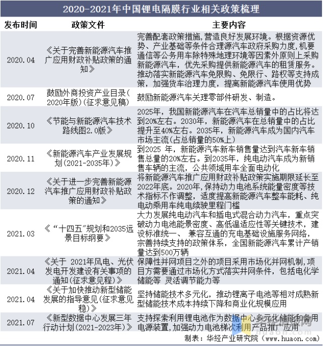2020-2021年中國鋰電隔膜行業相關政策梳理