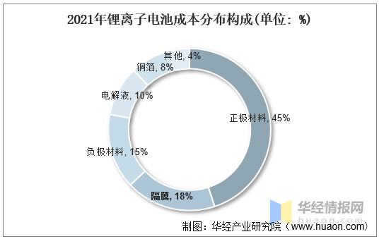 從鋰電池成本構成看,在動力電池領域,成本結構主要由正極、負極、隔膜以及電解液等組成,其中隔膜材料成本占比達18%。