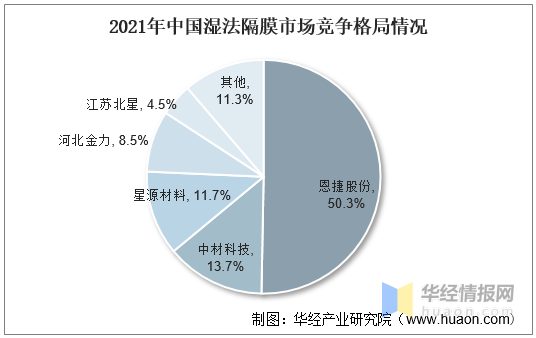 濕法隔膜方面,恩捷股份在國內市場占比超過50%,2021年市場份額達到50.3%,其次占比較多的為中材科技和星源材料,分別占比13.7%、11.7%。