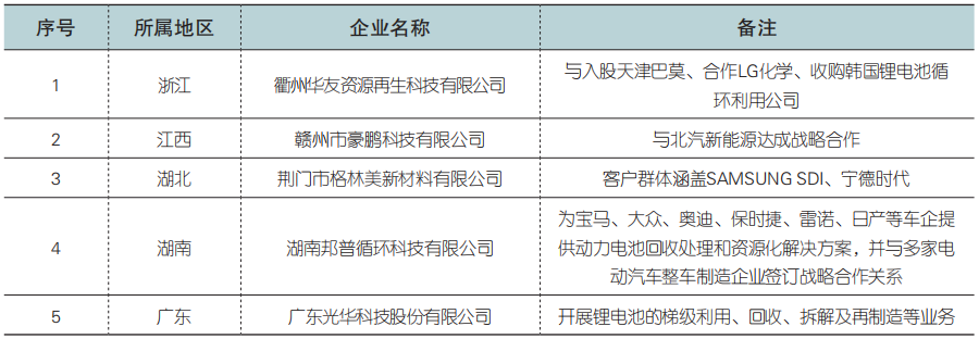 第一批符合新能源汽車廢舊動力蓄電池綜合利用行業規范條件企業名單
