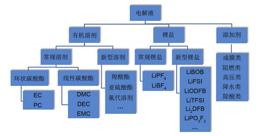 電解液基本組成(來源:張群斌等,《廢舊電池電解液回收及高值化利用研發進展》)