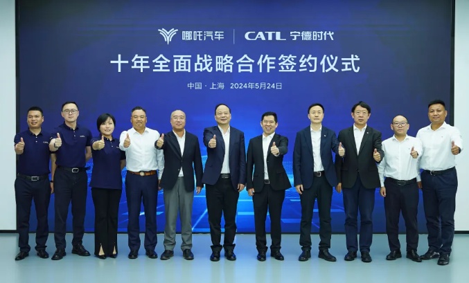 5月24日,哪吒汽車與寧德時代在上海簽署十年全面戰略合作協議。哪吒汽車創始人、董事長方運舟,寧德時代董事長兼CEO曾毓群出席并見證簽約。