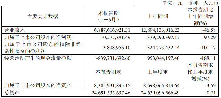 8月2日,寧波容百新能源科技股份有限公司(簡(jiǎn)稱:容百科技)發(fā)布公告,公司2024年上半年實(shí)現(xiàn)營(yíng)業(yè)收入68.88億元,同比下降46.58%;歸屬于上市公司股東的凈利潤(rùn)為1027.79萬(wàn)元,同比下降97.29%;歸屬上市公司扣非凈利潤(rùn)-380.9萬(wàn)元。