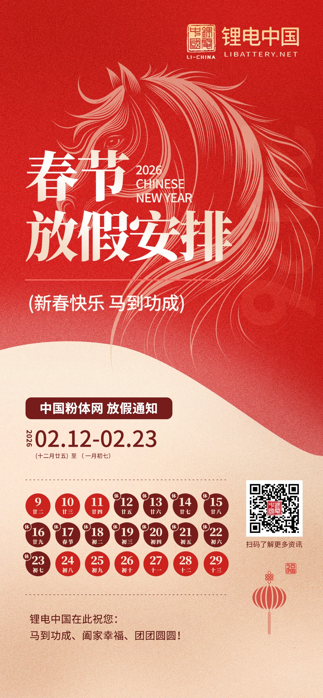值此馬年新春佳節來臨之際,鋰電中國全體員工向各位行業同仁致以最誠摯的祝福!