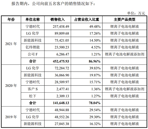 客戶方面,目前包括寧德時代、LG新能源、ATL、億緯鋰能和松下電池都是其客戶。其中,2021年寧德時代采購量占其銷售收入比重近50%,是其第一大客戶。