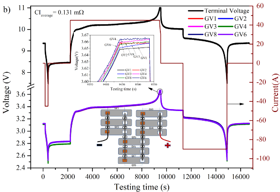 近日,合肥學(xué)院楊續(xù)來教授課題組研究LiFePO4/C單體電池間電連接阻抗對電池組性能的影響。通過調(diào)節(jié)單體電池間連接螺絲松緊度的方式來控制電連接阻抗大小(電池組中正常電連接點(diǎn)的電阻平均值為0.13mΩ,高于0.2mΩ的電連接點(diǎn)都設(shè)定為問題連接點(diǎn)(FECP)),結(jié)合溫度和電壓監(jiān)測,研究了電連接阻抗的不一致性對電池組循環(huán)性能的影響,為更好的理解動(dòng)力電池實(shí)際生產(chǎn)過程中虛焊問題提供參考。相關(guān)研究成果以“Identifying faulty electrical contact points in Li-ion Battery Packs”為題發(fā)表在Journal of The Electrochemical Society上。