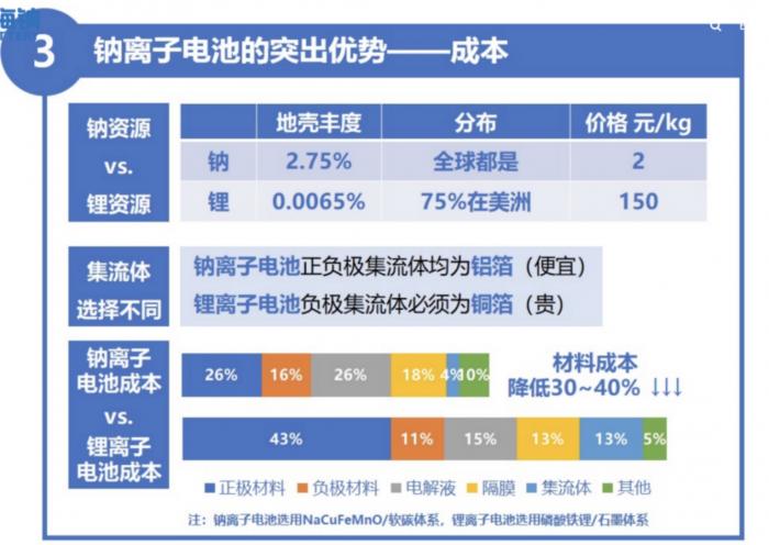 據中科海鈉披露,相比鋰離子電池,鈉離子電池材料成本端更具優勢。