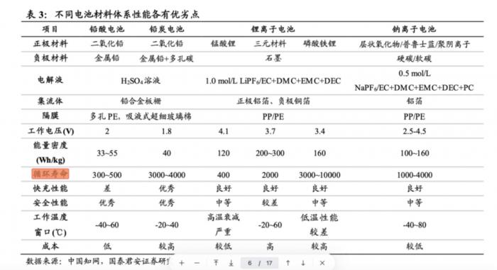目前已公布的主流鈉離子電池循環壽命,在1000-4000次之間。相比之下,磷酸鐵鋰電池壽命則在3000-10000次之間。