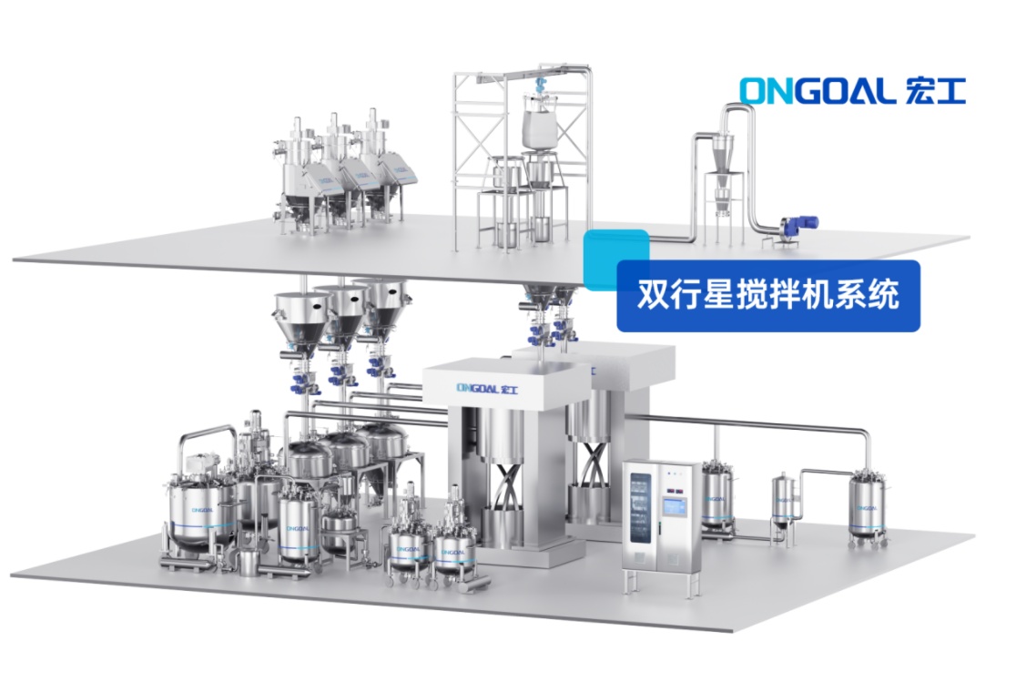 雙行星動力攪拌機是宏工科技推出多年的核心產品,并持續更新迭代,目前已經更新至第三代,可以滿足新周期動力電池大規模高效高質生產需求。該產品具有節能環保,運行高效;投料無粉塵;高均勻性,攪拌均勻無死角;攪拌槳運行軌跡精準,勻漿效率高等諸多優點。