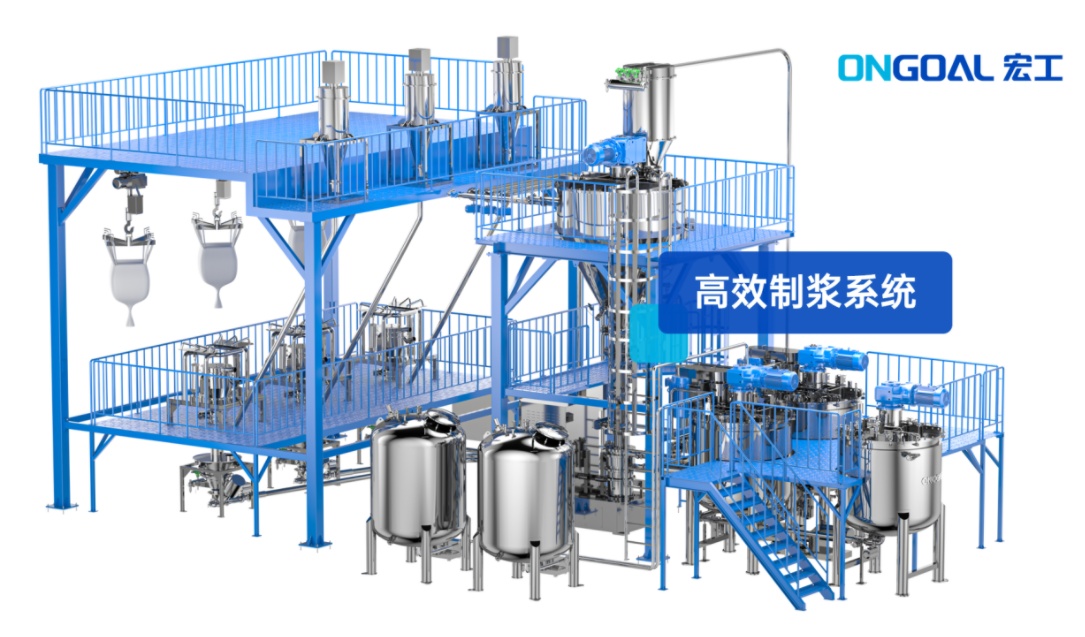 1200L高效制漿系統是宏工科技重點研發推出的新一代制漿技術,其綜合運營成本大幅下降。目前,宏工科技新型制漿機型已經推出涵蓋100L、300L、1200L、2400L,甚至3000L等系列產品。 宏工新型高效制漿系統已經與國內主流電池企業進行了大量的帶料工藝驗證評估,漿料加工性能、溫升、排料及制漿效率等方面得到了認可。