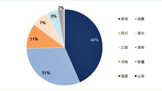 在國(guó)內(nèi)的鋰資源儲(chǔ)量中,西藏位居第二,僅次于青海。西藏鹽湖約有500多個(gè),面積超過(guò)8225平方公里,占西藏湖泊總面積約30%,主要分布在阿里地區(qū)、那曲地區(qū)和日喀則地區(qū)西北部等,海拔大多在4400米以上。