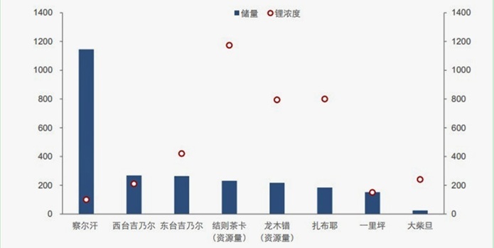 西藏鹽湖大多為富鋰鹽湖,據(jù)不完全統(tǒng)計(jì),平均鋰濃度超過(guò)224mg/L。從類(lèi)型看,西藏鹽湖大致可分為碳酸鹽型、硫酸鈉亞型和硫酸鎂亞型鹽湖,其中碳酸鹽型鹽湖鹵水全球罕見(jiàn),呈現(xiàn)出高鋰濃度、低鎂鋰比的特征,可采用較為簡(jiǎn)單的工藝提取粗碳酸鋰。