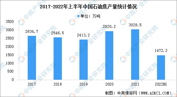 石油焦是原油經蒸餾將輕重質油分離后,重質油再經熱裂的過程轉化而成的產品,主要用來生產石墨電極、鋰電負極、高端預焙陽極等。石油焦是石油煉化副產品,產出基本依賴石油煉化產量。2022年6月全國石油焦產量248.9萬噸,同比下降1.8%,2022年1-6月全國石油焦產量為1472.2萬噸,同比下降1%。