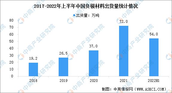 2022年上半年,國內新能源汽車銷量達到260萬輛,帶動動力電池出貨超200GWh。海外客戶加速對人造石墨技術應用,推動我國負極海外出貨上升。冬奧會后,限產限電放寬,石墨化產能利用率上升,負極產能得到部分釋放,市場需求得到較好的滿足。2022年上半年,中國鋰電負極材料出貨量54萬噸,同比增長68%。