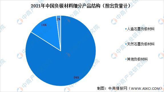 從產品出貨結構來看,受動力及儲能市場需求帶動,人造石墨對比天然石墨具有更好的一致性與循環性,帶動人造石墨占比提升;我國主要鋰電池企業逐步轉向人造石墨,帶動了人造石墨出貨量占比進一步提升。2021年人造石墨產品占比持續提升,市場份額上升至84%;天然石墨占比下降,市場份額下滑至14%。