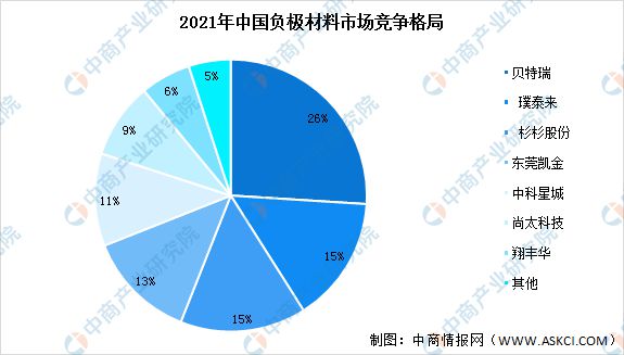 天然石墨可分為鱗片石墨和土狀石墨,負極材料通常采用鱗片石墨。從市場競爭格局來看,貝特瑞獨占63%的市場份額,翔豐華、杉杉占比分別為8%、6%。