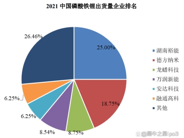 目前我國磷酸鐵鋰正極材料的市場需求快速上升,行業(yè)整體集中度較高。根據(jù)高工鋰電統(tǒng)計數(shù)據(jù)顯示,2021年磷酸鐵鋰出貨量排名前六的企業(yè)的市場占有率合計約為73.54%,出貨量排名前六的企業(yè)分別為湖南裕能、德方納米、龍蟠科技、萬潤新能、安達科技和融通高科,其中,安達科技的市場占有率約為 6.25%。