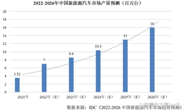 另據(jù)IDC發(fā)布的《2022-2026中國新能源汽車市場趨勢預(yù)測》,預(yù)計到2026年,我國新能源汽車市場規(guī)模將達到1598萬輛,年復(fù)合增長率35.1%。