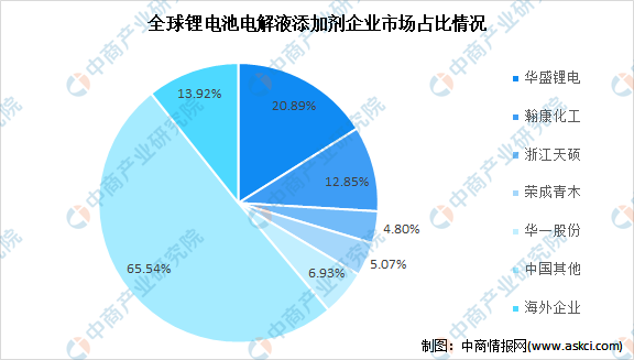 全球范圍內中國企業在電解液添加劑行業市場占比