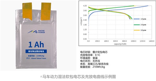 由于不使用鋰金屬負極、不含任何液態物質(如液態的溶劑、電解質、添加劑等),該款硫化物全固態電芯具有高本征安全性。目前馬車動力已完成軟包硫化物全固態電池的電極結構匹配、工藝參數優化驗證等工作,大容量電芯、自動化試制產線設計搭建以及電池性能提升等后續工作正在積極推進中。