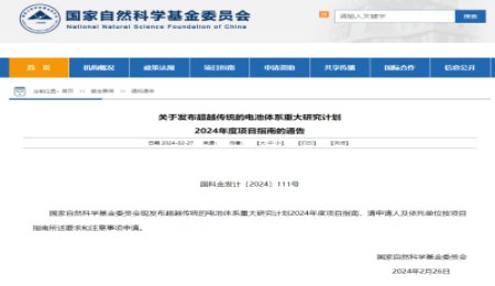 2月26日,國家自然科學基金委員會發布《關于發布超越傳統的電池體系重大研究計劃2024年度項目指南的通告》。通告指出超越傳統的電池體系重大研究計劃面向“雙碳”戰略和國家安全的重大需求,針對儲能電池與動力電池在能量密度、功率密度、安全性、環境適應性、資源與成本等方面面臨的關鍵科學問題和技術瓶頸,發展超...