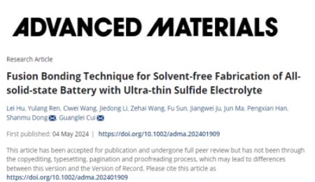 近日,中國科學院青島生物能源與過程研究所又公布了一項固態電池的技術突破,是在崔光磊研究員帶領下,董杉木研究員、胡磊博士等利用熔融黏結技術,干法制備出具有出色柔韌性的超薄硫化物固態電解質膜,其優異的力學性能、離子電導率以及應力耗散特性可有效抑制電池內部應力不均導致的機械力失效。該方法制備的高面載量Li...